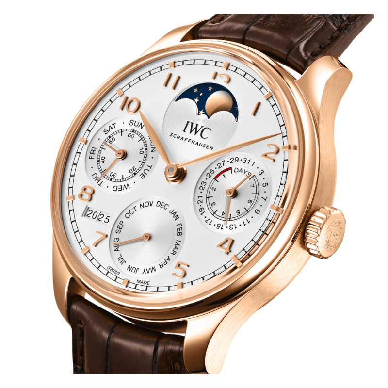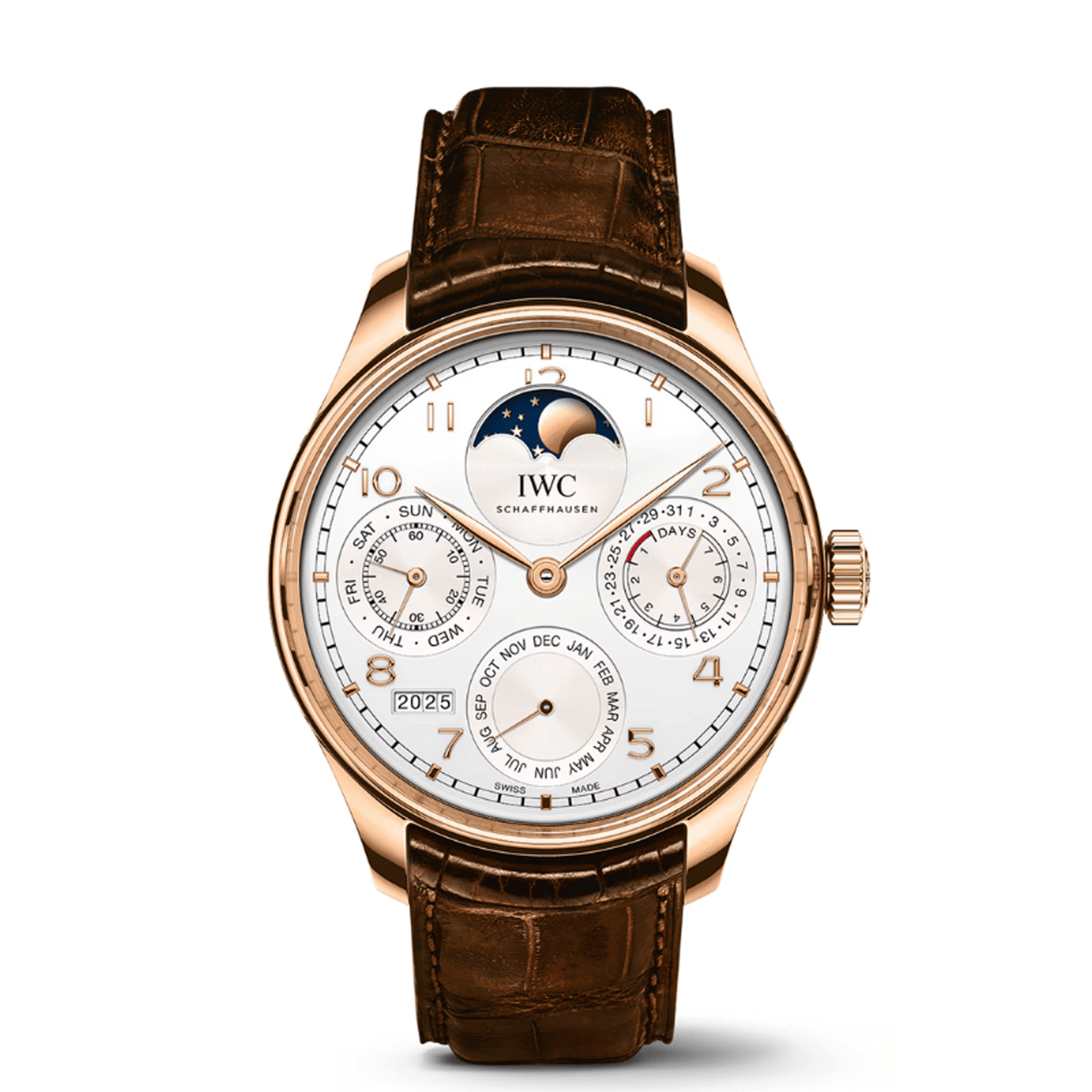 IWC Portugieser Perpetual Calendar 44mm Rose Gold & Leather Strap White Dial Automatic Gents Watch