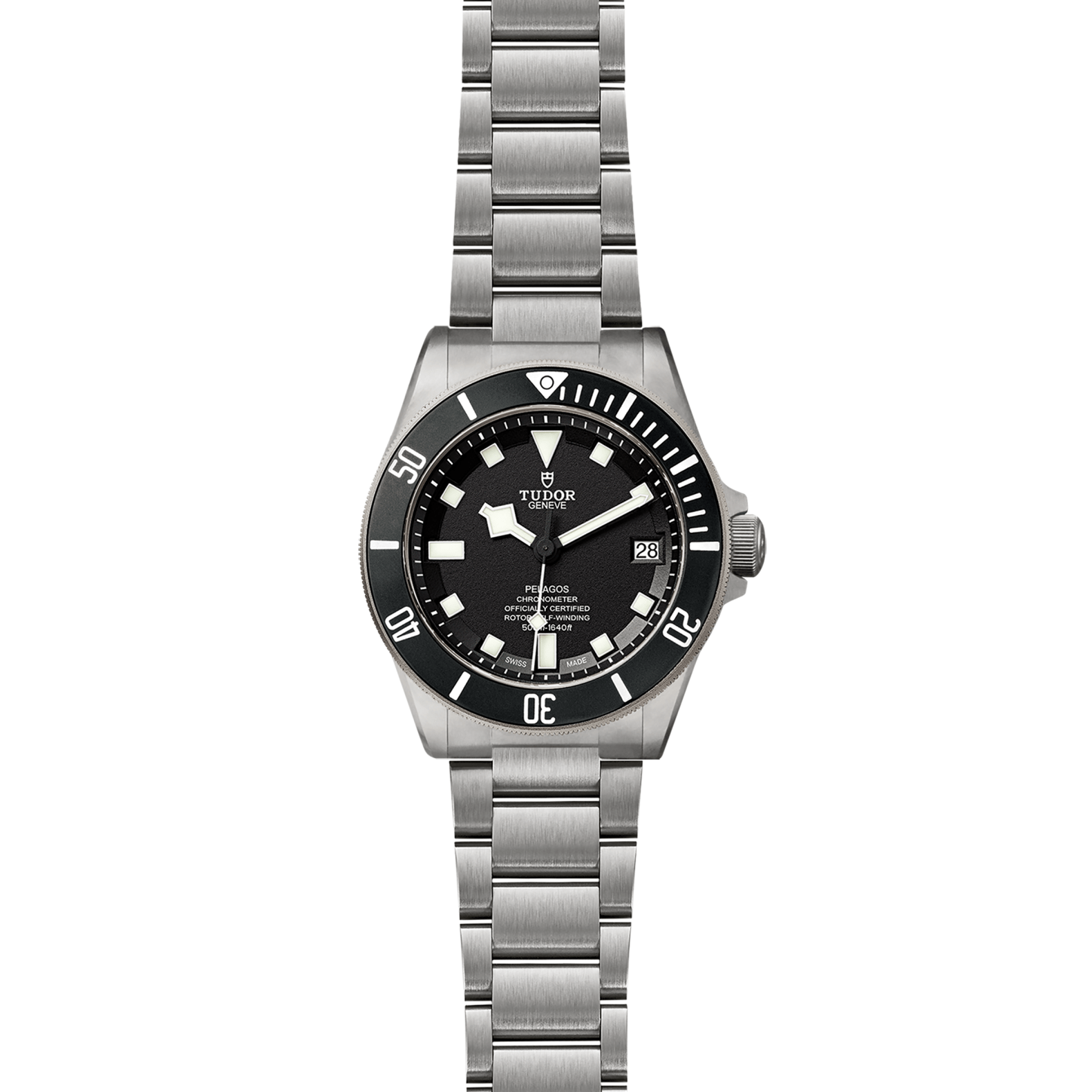 Titanium winding crown with TUDOR logo in relief Helium escape valve at 9 o’clock