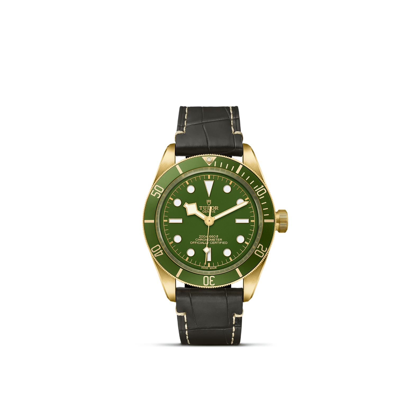 18 ct yellow gold screw-down winding crown, with the TUDOR rose in relief with circular satin-brushed 18 ct yellow gold winding crown tube