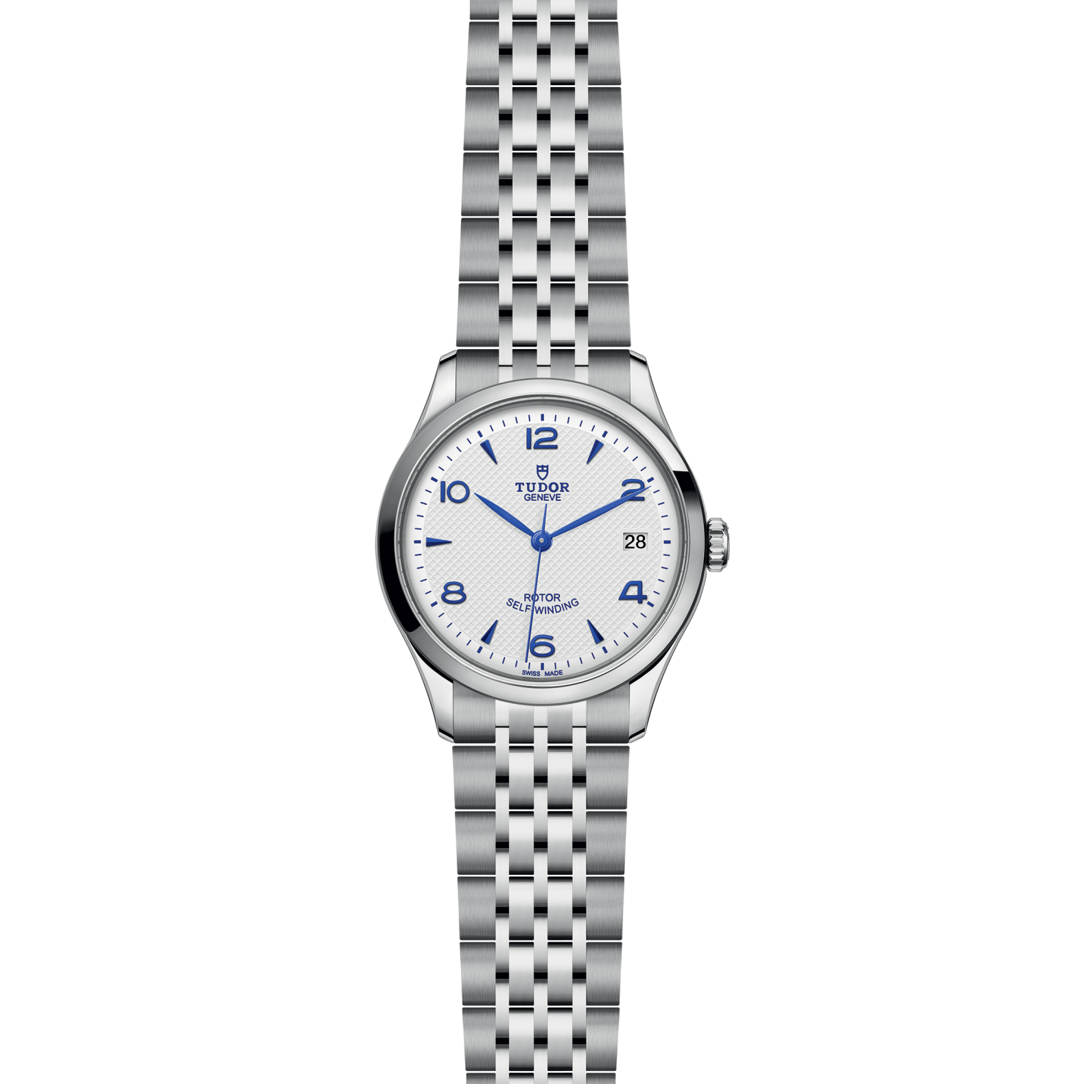 Steel bracelet, 7 rows, satin-brushed external links, polished centre links, with folding clasp and safety catch