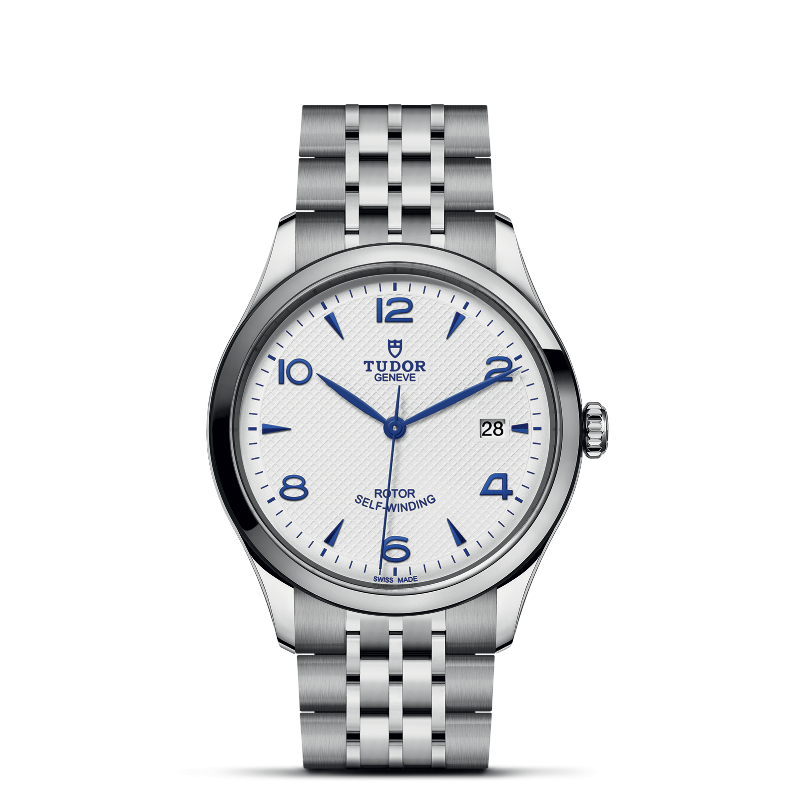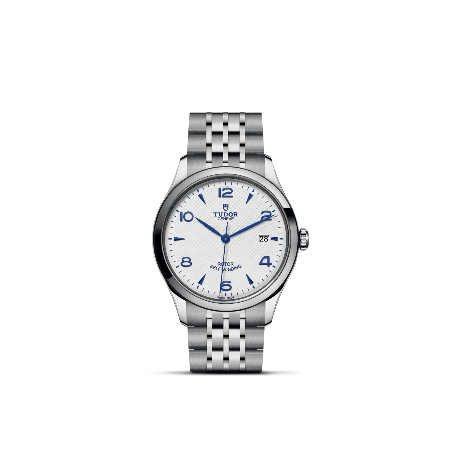 39mm steel case, Opaline and blue dial